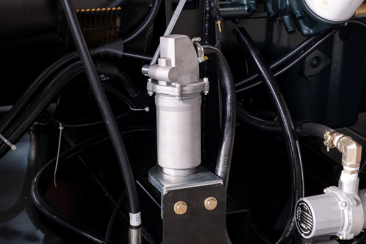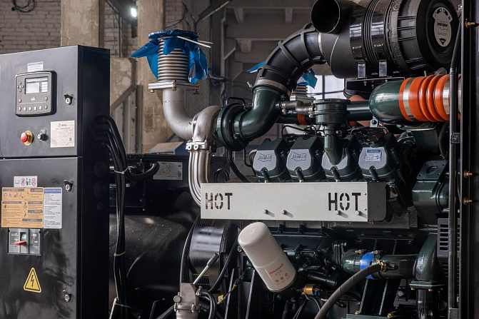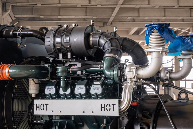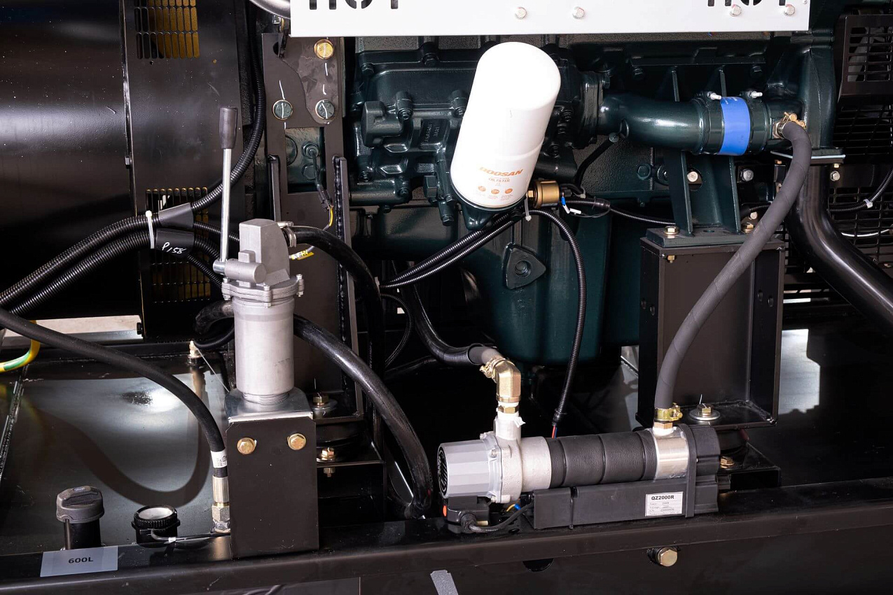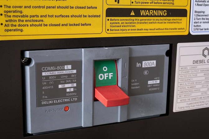 Автомат защиты генератора (Delixi 3Р), электрический подогреватель охлаждающей жидкости, электронный датчик уровня топлива, устройство подзарядки АКБ, промышленный глушитель, аккумуляторная батарея.