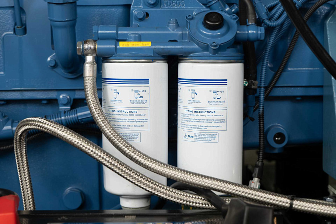 В комплектацию входит - подогреватель охлаждающей жидкости SmartGen, фильтр-сепаратор топливный, крышка для слива топлива из бака, батарея Varta +подзарядка аккумуляторной батареи SmartGen, промышленный глушитель + компенсатор. Картер двигателя имеет 2 отверстия для масляного насоса и для установки подогревателя масла. Насос для откачки масла из картера двигателя. Медный радиатор FAST рабочая температура до 50С.